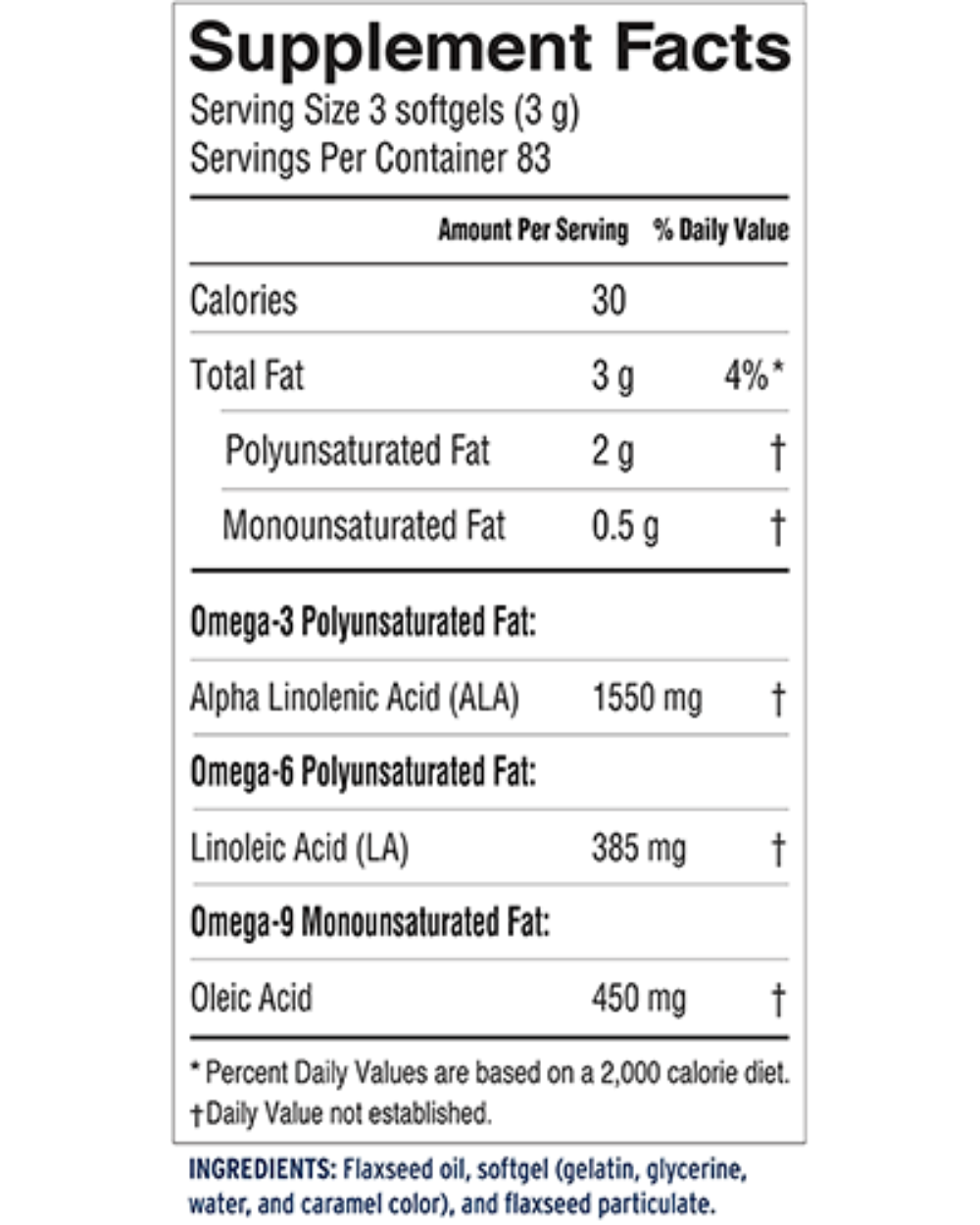 - High in ALA omega-3 fatty acid; 1,550mg per serving