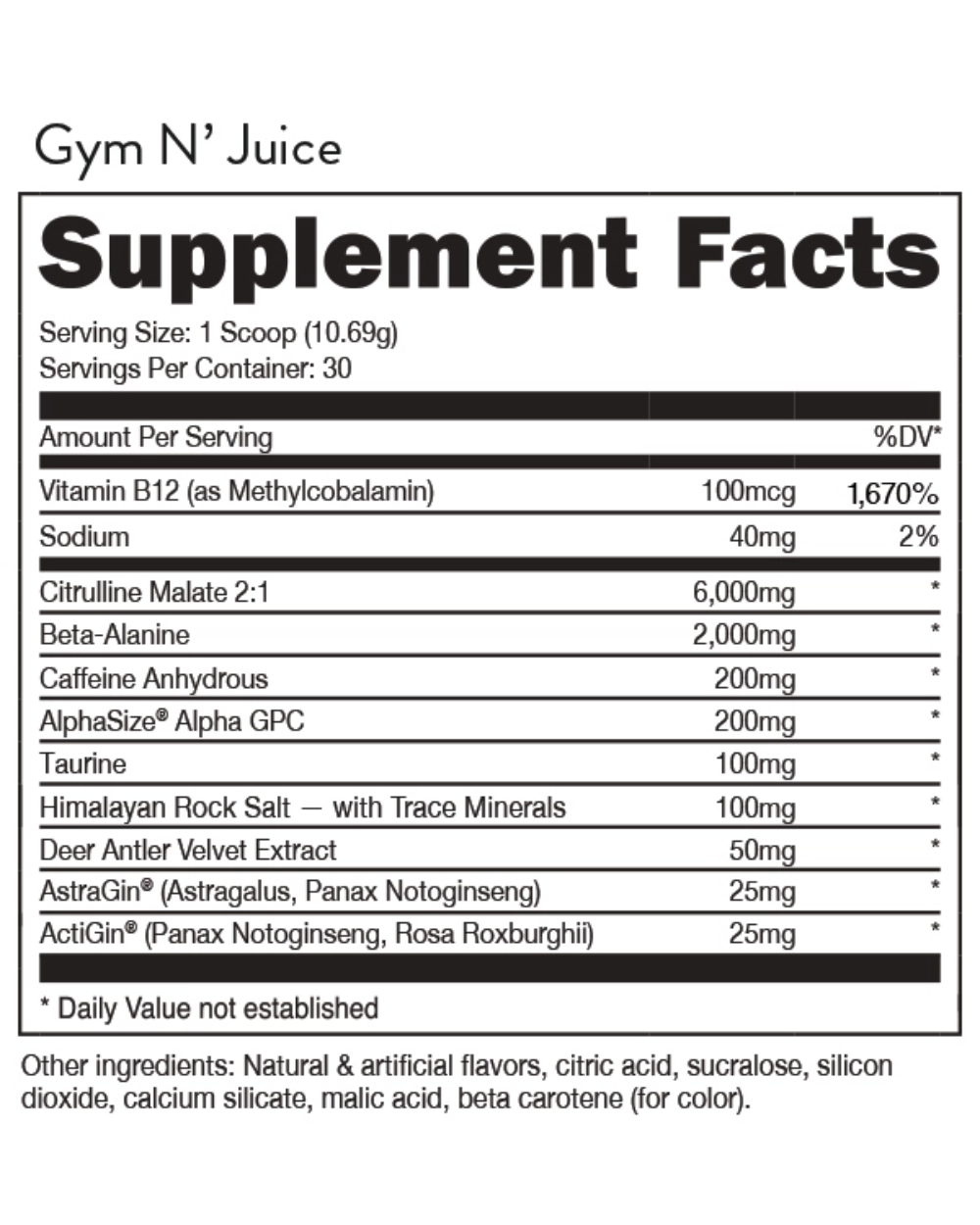 - Citrulline: 6g to maximize blood flow (nitric oxide booster)