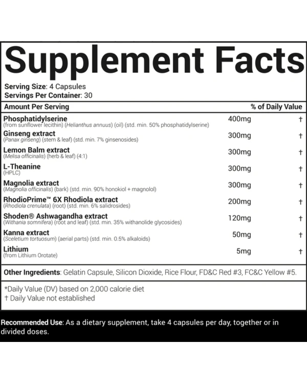 Elevate your fitness and well-being with CALM. This unique blend supports cognitive function, mood enhancement, and stress alleviation. By reducing cortisol, the stress hormone, CALM helps you stay relaxed and focused throughout the day. Ingredients like Phosphatidylserine and Ginseng extract promote mental clarity, while L-Theanine and Magnolia Bark extract ensure restful sleep for muscle recovery. Adaptogens like RhodioPrime™ 6X Rhodiola and Shoden® Ashwagandha empower you with resilience and energy. Try CALM to transform your body and mind today.