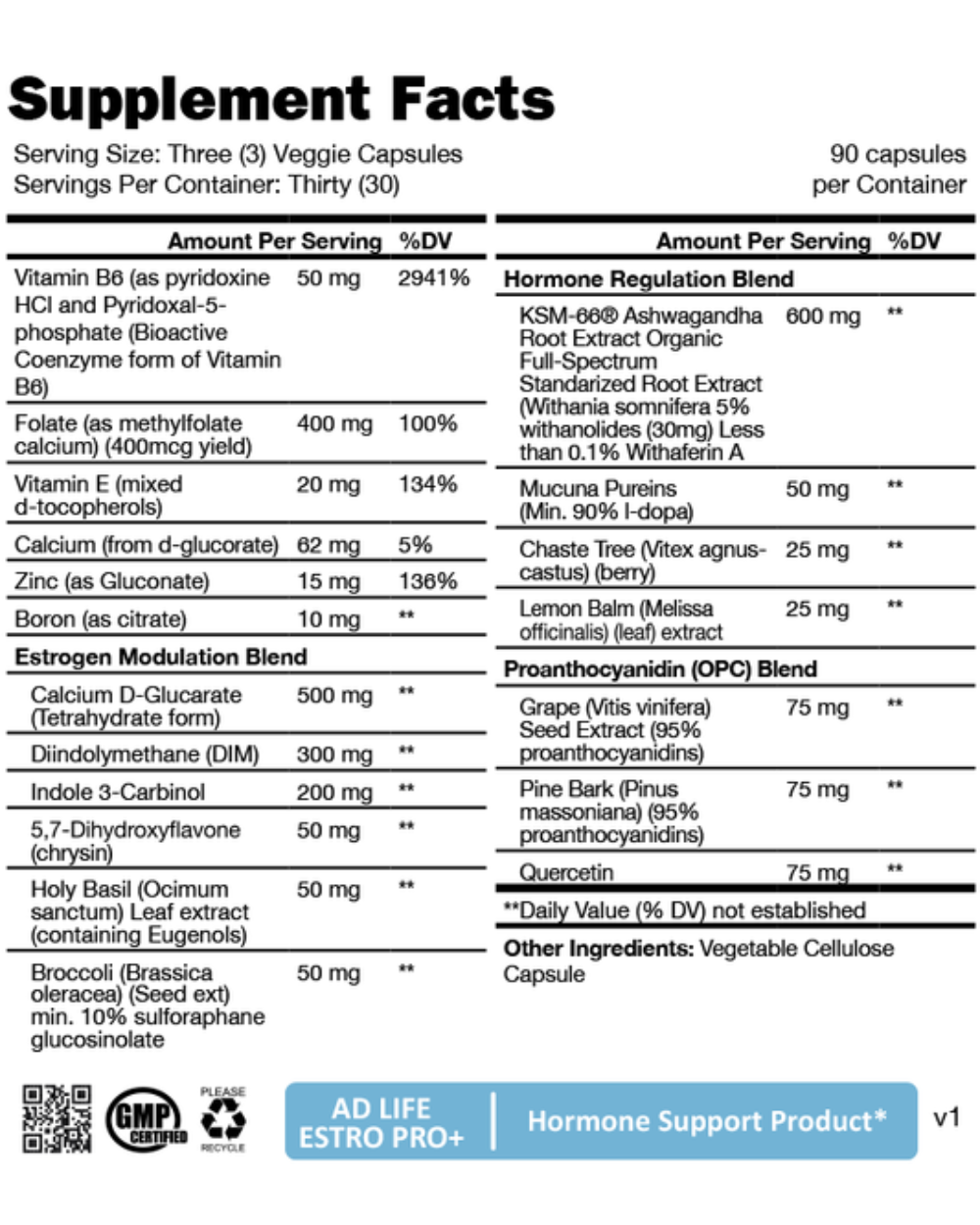 Adaptogens in EstroPro+ help the body cope with stress and can boost immunity and overall health and well being.