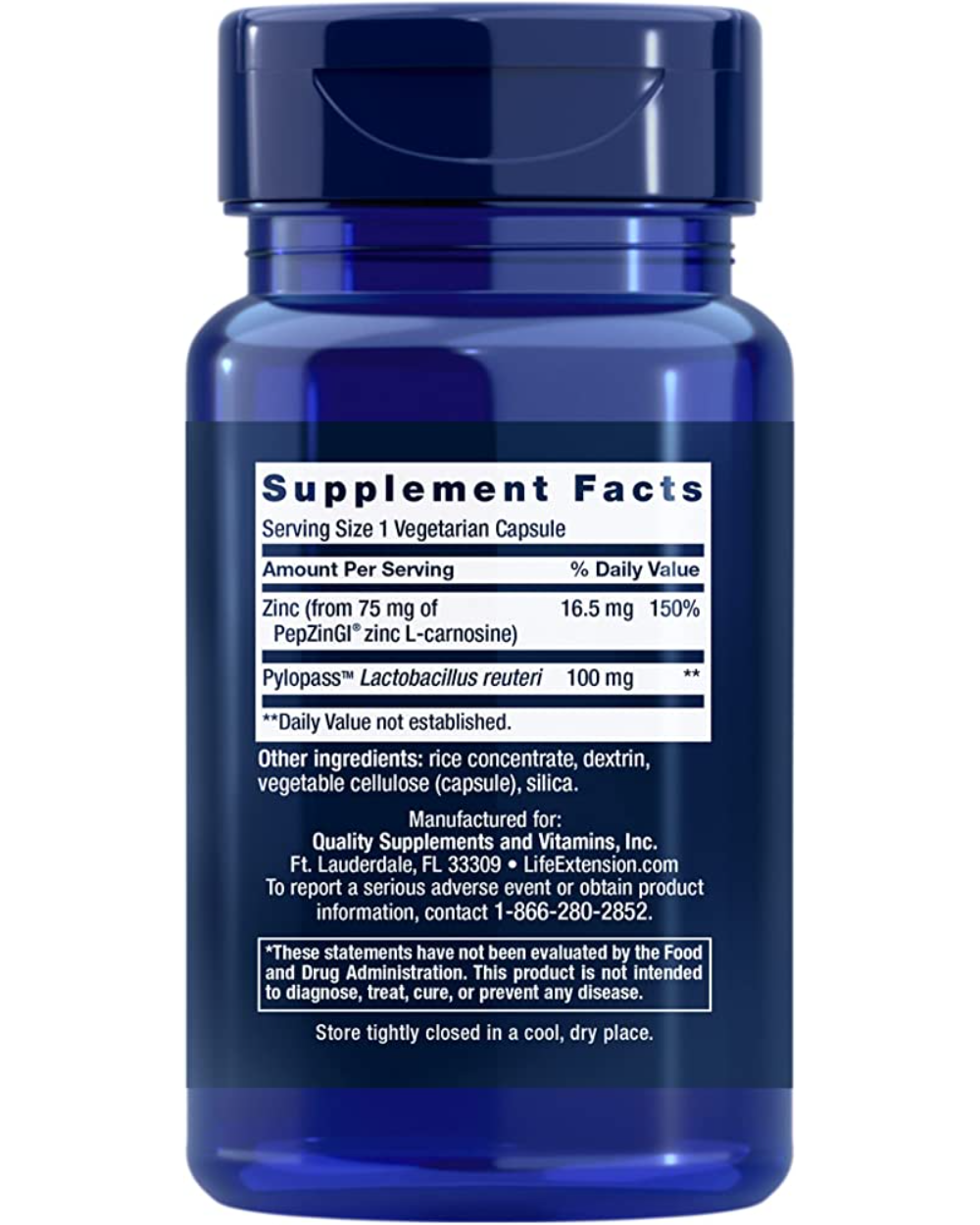 The trace element zinc promotes stomach health. And when combined with the amino acid-derived carnosine (as zinc L-carnosine), the effects are even more pronounced. This comprehensive approach is just one of the reasons to trust the science-backed nutritional supplement from Life Extension®.
