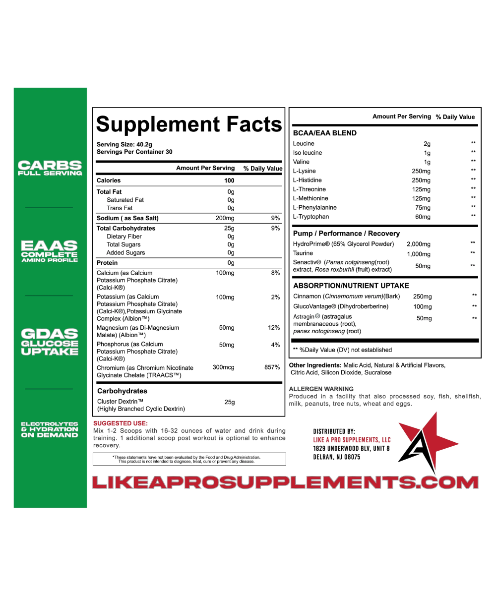 The NEW Glycotrix V3 Intra CARB Formula is here and better than ever. More Pumps, More Hydration, More Recovery, better Performance all backed by the latest up to date ingredients backed by science. The formula also includes insulin mimicking agents to help shuttle carbs and nutrients into the muscle cells creating an even more dominant effect for improved pumps.