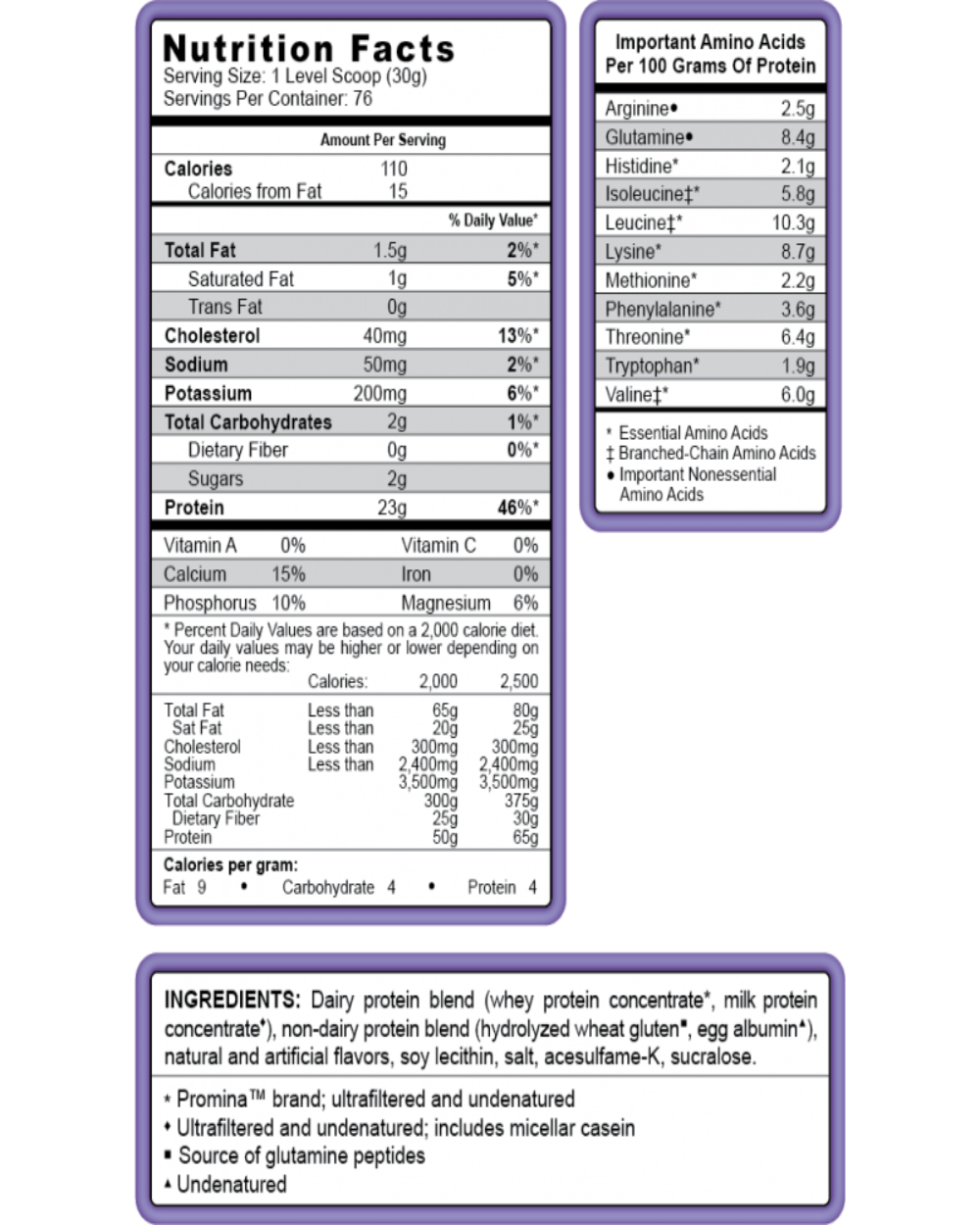 - Undenatured Whey Protein, Micellar Casein & Egg Albumin