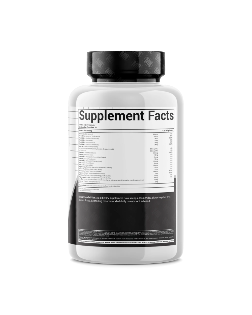 Elevate your wellness journey with MULTI, a comprehensive supplement designed to fill nutritional gaps and support overall health. Unleash the potential of essential vitamins and minerals that enhance your body's functions. Experience the benefits of Vitamin A for skin health and immunity, the power of Benfotiamine to combat cell damage, and the vitality of Riboflavin for energy metabolism. Enjoy the advantages of Vitamin D3 for bone health, Iodine for thyroid function, and Chromium for improved insulin action. Maximize your well-being with the potency of TRAACS® Minerals, ensuring optimal absorption for your body's needs.