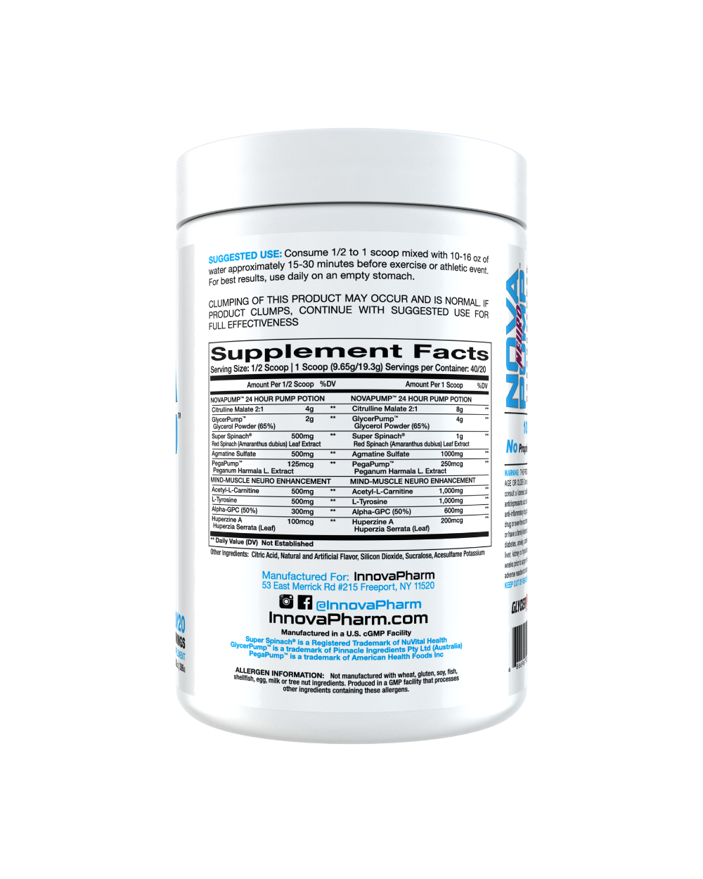 PegaPump™ is another breakthrough pump and performance ingredient included in NovaPump™. PegaPump™ is not only a great ingredient for muscle pumps, but also for cardiovascular health and performance.†