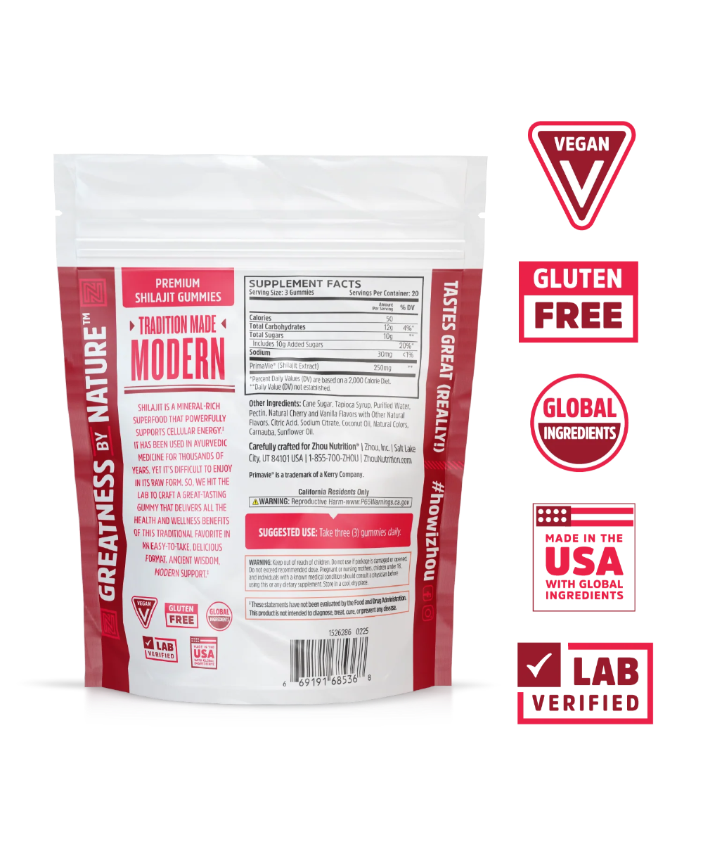 Our Shilajit Gummies formula is made with Primavie® Shilajit, a clinically studied, purified shilajit extract known for its proven efficacy to support cellular energy.**