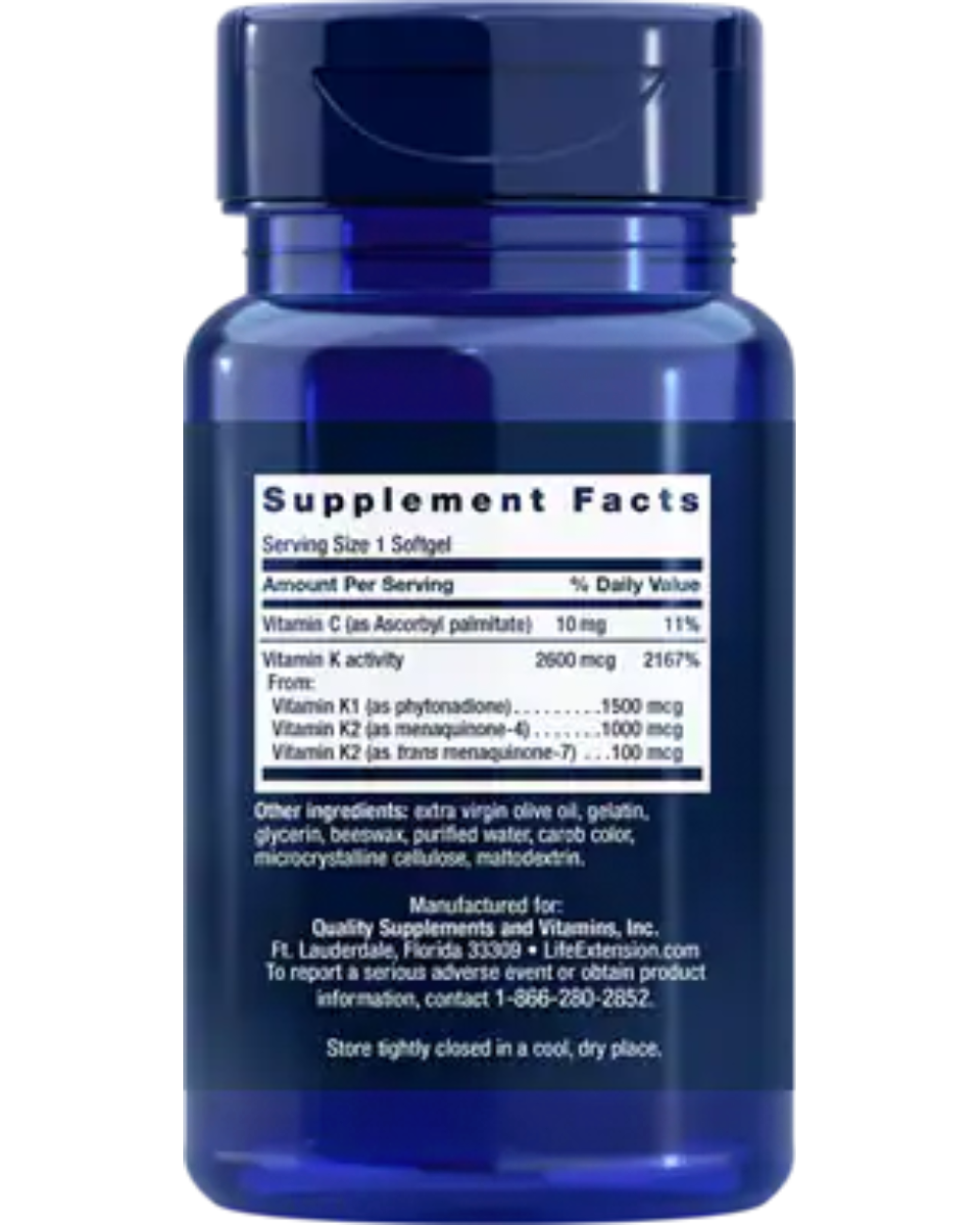 Just one daily softgel of Super K provides 100 mcg of vitamin K2 (MK-7); 1,000 mcg of vitamin K2 (MK-4); and 1,500 mcg of vitamin K1.